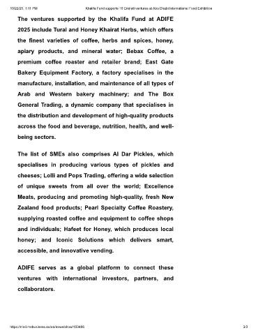 10/22/25, 1:11 PM Khalifa Fund supports 10 Emirati ventures at Abu Dhabi International Food Exhibition