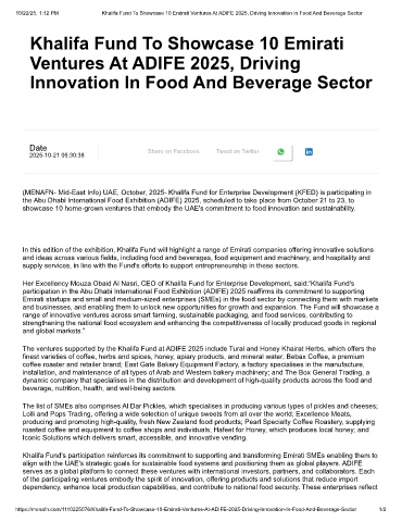 10/22/25, 1:12 PM Khalifa Fund To Showcase 10 Emirati Ventures At ADIFE 2025, Driving Innovation In Food And Beverage Sector