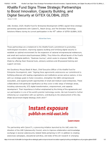 10/20/25, 1:49 PM Khalifa Fund Signs Three Strategic Partnerships to Boost Innovation, Capacity Building, and Digital Security at GITEX GLOBAL 2…
