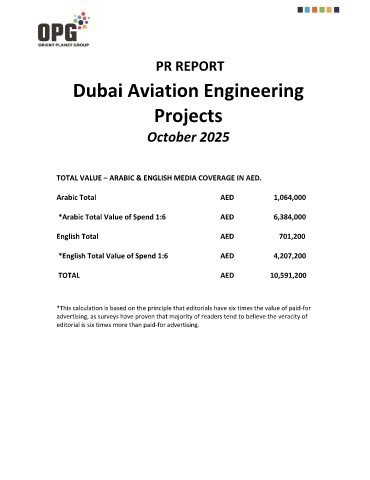 TOTAL VALUE – ARABIC & ENGLISH MEDIA COVERAGE IN AED.