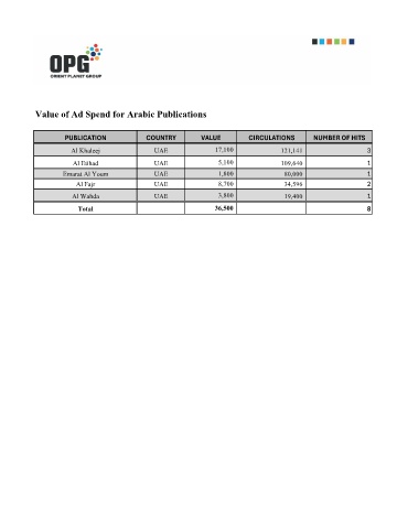 Value of Ad Spend for Arabic Publications