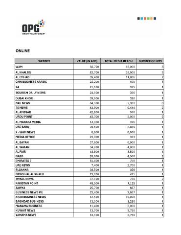 WEBSITE VALUE (IN AED) TOTAL MEDIA REACH NUMBER OF HITS