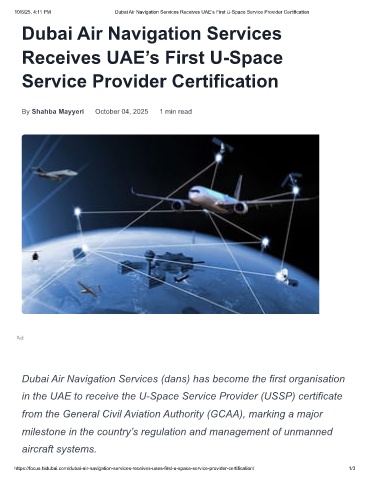 10/6/25, 4:11 PM Dubai Air Navigation Services Receives UAE’s First U-Space Service Provider Certification