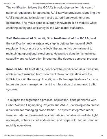 https://focus.hidubai.com/dubai-air-navigation-services-receives-uaes-first-u-space-service-provider-certification/ 2/3
