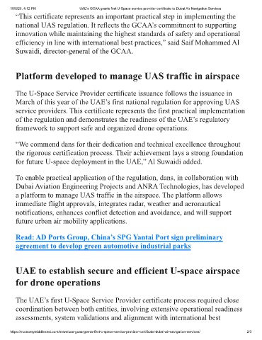 https://economymiddleeast.com/news/uae-gcaa-grants-first-u-space-service-provider-certificate-dubai-air-navigation-services/ 2/3