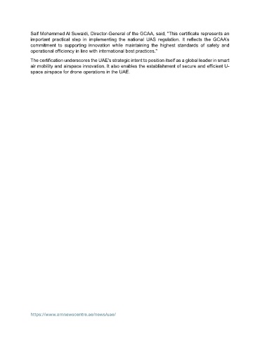 Saif Mohammed Al Suwaidi, Director-General of the GCAA, said, "This certificate represents an