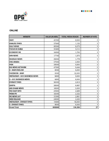 WEBSITE VALUE (IN AED) TOTAL MEDIA REACH NUMBER OF HITS