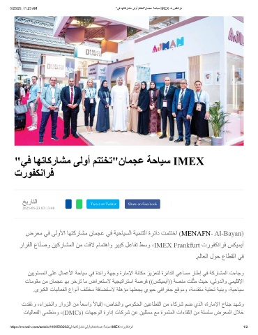https://menafn.com/arabic/1109589202/ﻲﻓ-ﺎﮭﺗﺎﻛرﺎﺷﻣ-ﻰﻟوأ-مﺗﺗﺧﺗﻧﺎﻣﺟﻋ-ﺔﺣﺎﯾﺳ-IMEX-تروﻔﻛﻧارﻓ 1/2