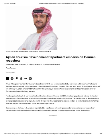 5/13/25, 10:44 AM Ajman Tourism Development Department embarks on German roadshow