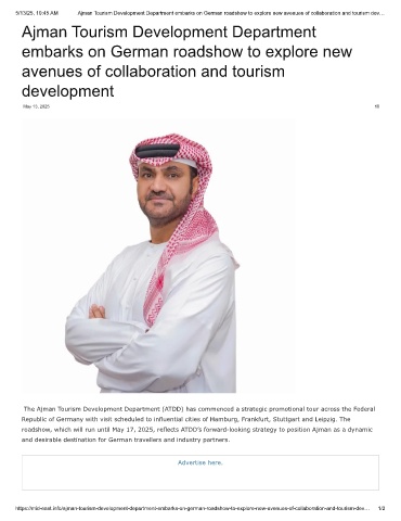 5/13/25, 10:45 AM Ajman Tourism Development Department embarks on German roadshow to explore new avenues of collaboration and tourism dev…