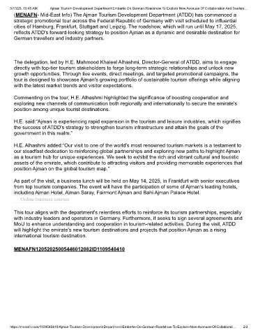 https://menafn.com/1109540410/Ajman-Tourism-Development-Department-Embarks-On-German-Roadshow-To-Explore-New-Avenues-Of-Collaborati… 2/2