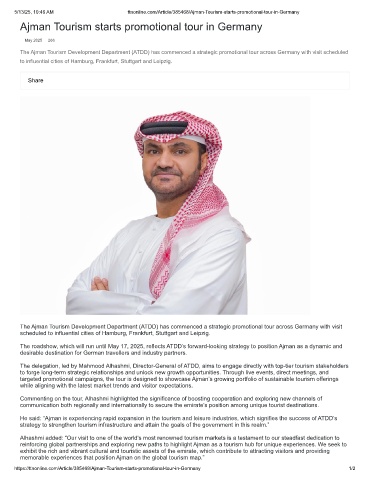 5/13/25, 10:46 AM ttnonline.com/Article/385468/Ajman-Tourism-starts-promotional-tour-in-Germany