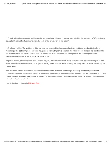 5/13/25, 10:47 AM Ajman Tourism Development Department embarks on German roadshow to explore new avenues of collaboration and tourism dev…