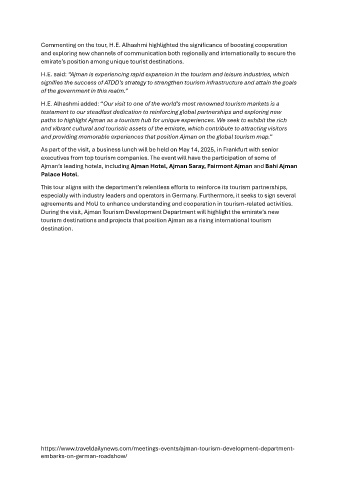 During the visit, Ajman Tourism Development Department will highlight the emirate’s new