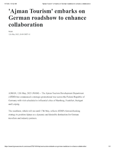 5/13/25, 10:52 AM 'Ajman Tourism' embarks on German roadshow to enhance collaboration