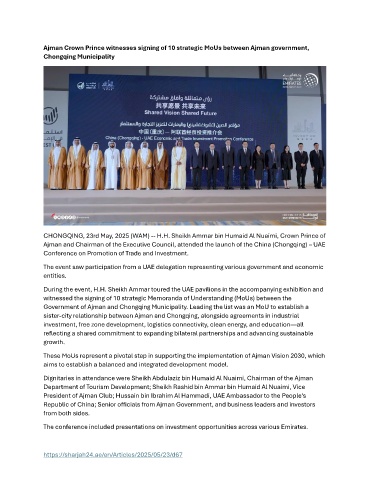 CHONGQING, 23rd May, 2025 (WAM) -- H.H. Sheikh Ammar bin Humaid Al Nuaimi, Crown Prince of