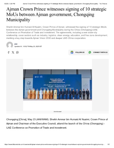https://www.tribuneindia.com/news/world/ajman-crown-prince-witnesses-signing-of-10-strategic-mous-between-ajman-government-chongqing-municip… 1/5