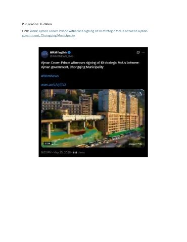Publication: X - Wam Link: Wam: Ajman Crown Prince witnesses signing of 10 strategic MoUs between Ajman government, Chongqing Municipality