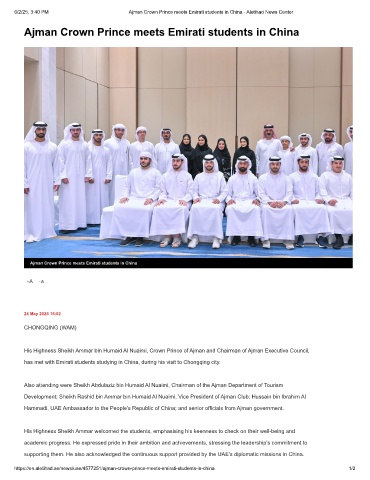 6/2/25, 3:40 PM Ajman Crown Prince meets Emirati students in China - Aletihad News Center