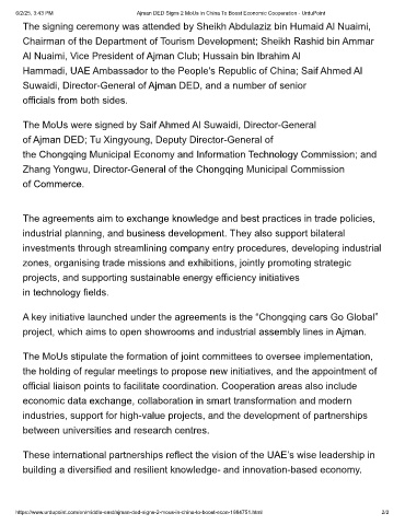 6/2/25, 3:43 PM Ajman DED Signs 2 MoUs In China To Boost Economic Cooperation - UrduPoint