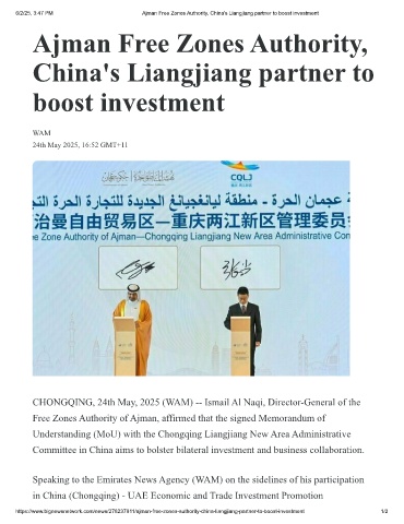 6/2/25, 3:47 PM Ajman Free Zones Authority, China's Liangjiang partner to boost investment