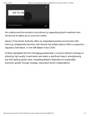 6/2/25, 3:47 PM Ajman Free Zones Authority, China’s Liangjiang Partner To Boost Investment - UrduPoint