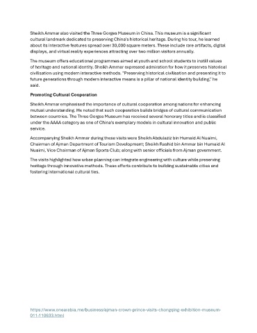 Sheikh Ammar also visited the Three Gorges Museum in China. This museum is a significant