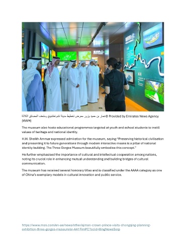 H.H. Sheikh Ammar expressed admiration for the museum, saying:“Preserving historical civilisation