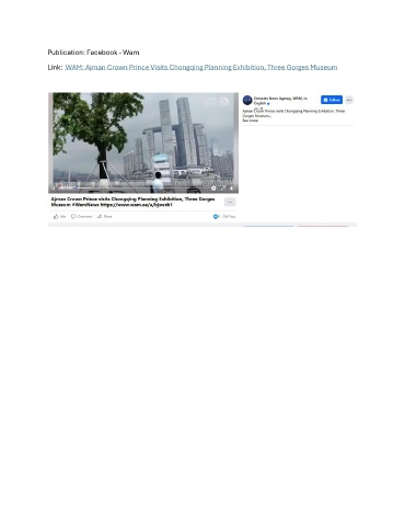 Publication: Facebook - Wam Link: WAM: Ajman Crown Prince Visits Chongqing Planning Exhibition, Three Gorges Museum