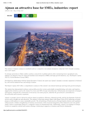 5/6/25, 5:13 PM Ajman an attractive base for SMEs, industries: report