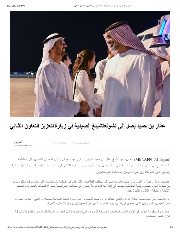 5/21/25, 4:20 PM ﻲﺋﺎﻧﺛﻟا نوﺎﻌﺗﻟا زﯾزﻌﺗﻟ ةرﺎﯾز ﻲﻓ ﺔﯾﻧﯾﺻﻟا ﻎﻧﯾﺷﺗﻐﻧوﺷﺗ ﻰﻟإ لﺻﯾ دﯾﻣﺣ نﺑ رﺎّﻣﻋ