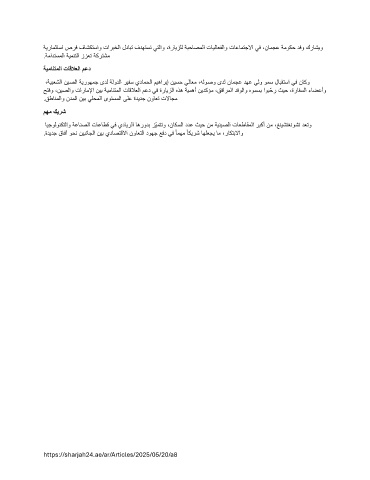 حتفو ،نيصلاو تاراملإا نيب ةيمانتملا تاقلاعلا معد يف ةرايزلا هذه ةيمهأ نيدكؤم ،قفارملا دفولاو هومسب اوبّحر ثيح ،ةرافسلا ءاضعأو
