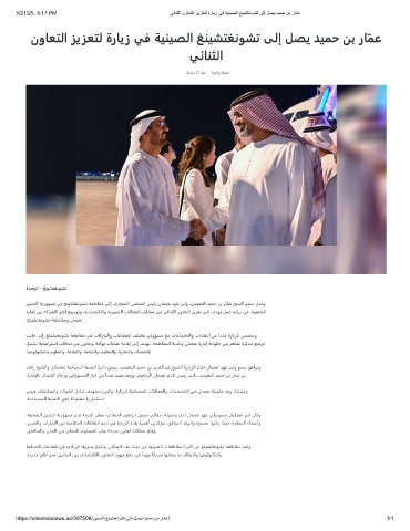 5/21/25, 4:17 PM ﻲﺋﺎﻧﺛﻟا نوﺎﻌﺗﻟا زﯾزﻌﺗﻟ ةرﺎﯾز ﻲﻓ ﺔﯾﻧﯾﺻﻟا ﻎﻧﯾﺷﺗﻐﻧوﺷﺗ ﻰﻟإ لﺻﯾ دﯾﻣﺣ نﺑ رﺎّﻣﻋ