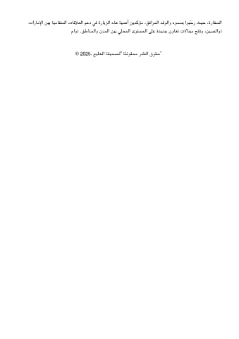تارﺎﻣﻹا ﻦﻴﺑ ﺔﻴﻣﺎﻨﺘﻤﻟا تﺎﻗﻼﻌﻟا ﻢﻋد ﻓ ةرﺎﻳﺰﻟا هﺬﻫ ﺔﻴﻤﻫأ ﻦﻳﺪﻛﺆﻣ ،ﻖﻓاﺮﻤﻟا ﺪﻓﻮﻟاو هﻮﻤﺴﺑ اﻮﺒﺣر ﺚﻴﺣ ،ةرﺎﻔﺴﻟا ماو) .ﻖﻃﺎﻨﻤﻟاو نﺪﻤﻟا ﻦﻴﺑ ﻠﺤﻤﻟا ىﻮﺘﺴﻤﻟا ﻠﻋ ةﺪﻳﺪﺟ نوﺎﻌﺗ تﻻﺎﺠﻣ ﺢﺘﻓو ،ﻦﻴﺼﻟاو) © 2025. ﺞﻴﻠﺨﻟا ﺔﻔﻴﺤﺼﻟ" ﺔﻇﻮﻔﺤﻣ ﺮﺸﻨﻟا قﻮﻘﺣ"