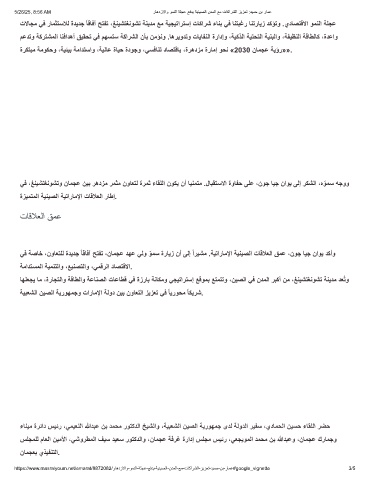 5/26/25, 8:56 AM رﺎھدزﻻاو وﻣﻧﻟا ﺔﻠﺟﻋ ﻊﻓدﯾ ﺔﯾﻧﯾﺻﻟا ندﻣﻟا ﻊﻣ تﺎﻛارﺷﻟا زﯾزﻌﺗ :دﯾﻣﺣ نﺑ رﺎﻣﻋ