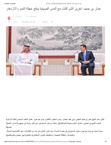5/26/25, 8:56 AM رﺎھدزﻻاو وﻣﻧﻟا ﺔﻠﺟﻋ ﻊﻓدﯾ ﺔﯾﻧﯾﺻﻟا ندﻣﻟا ﻊﻣ تﺎﻛارﺷﻟا زﯾزﻌﺗ :دﯾﻣﺣ نﺑ رﺎﻣﻋ