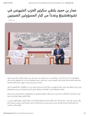 5/26/25, 8:55 AM نﯾﯾﻧﯾﺻﻟا نﯾﻟوؤﺳﻣﻟا رﺎﺑﻛ نﻣ ًاددﻋو ﻎﻧﯾﺷﺗﻐﻧوﺷﺗ ﻲﻓ ﻲﻋوﯾﺷﻟا بزﺣﻟا رﯾﺗرﻛﺳ ﻲﻘﺗﻠﯾ دﯾﻣﺣ نﺑ رﺎﻣﻋ - Nas News UAE