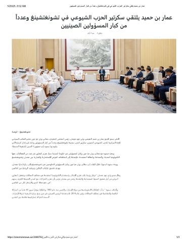 5/26/25, 8:52 AM نﯾﯾﻧﯾﺻﻟا نﯾﻟوؤﺳﻣﻟا رﺎﺑﻛ نﻣ ًاددﻋو ﻎﻧﯾﺷﺗﻐﻧوﺷﺗ ﻲﻓ ﻲﻋوﯾﺷﻟا بزﺣﻟا رﯾﺗرﻛﺳ ﻲﻘﺗﻠﯾ دﯾﻣﺣ نﺑ رﺎﻣﻋ