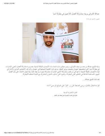 تارﺎﻣﻹا ﻲﺒﻋﻻ ﻞﻀﻓأ ﺔﻛرﺎﺸﻣ ةروﺮﻀﺑ ،ﺔﯿﻧﺪﺒﻟا ﺔﻗﺎﯿﻠﻟاو مﺎﺴﺟﻷا ءﺎﻨﺑ دﺎﺤﺗا ةرادإ ﺲﻠﺠﻣ ﺲﯿﺋر ،ﻲﻗﺮﺸﻟا ﻒﯿﺳ ﻦﺑ ﺪﻤﺣ ﻦﺑ ﷲﺪﺒﻋ ﺦﯿﺸﻟا ﮫّﺟو