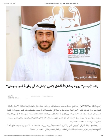 تارﺎﻣﻹا ﻲﺒﻋﻻ ﺔﻛرﺎﺸﻣ نﻮﻜﺗ نأ ﻰﻟإ ً ﺎﯿﻋاد ،ﺔﯿﻧﺪﺒﻟا ﺔﻗﺎﯿﻠﻟاو مﺎﺴﺟﻷا ءﺎﻨﺒﻟ ﻲﺗارﺎﻣﻹاو ﻲﻟوﺪﻟا ﻦﯾدﺎﺤﺗﻻا فاﺮﺷإو ،نﺎﻤﺠﻋ ﻲﻓ ﺔﯿﺣﺎﯿﺴﻟا