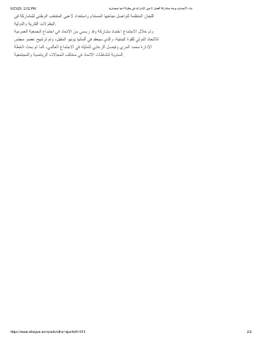 ﻲﻓ ﺔﻛرﺎﺷﻣﻠﻟ ﻲﻧطوﻟا بﺧﺗﻧﻣﻟا ﻲﺑﻋﻻ دادﻌﺗﺳاو مادﺗﺳﻣﻟا ﺎﮭﺣﺎﺟﻧ لﺻاوﺗﻟ ﺔﻣظﻧﻣﻟا نﺎﺟﻠﻟا
