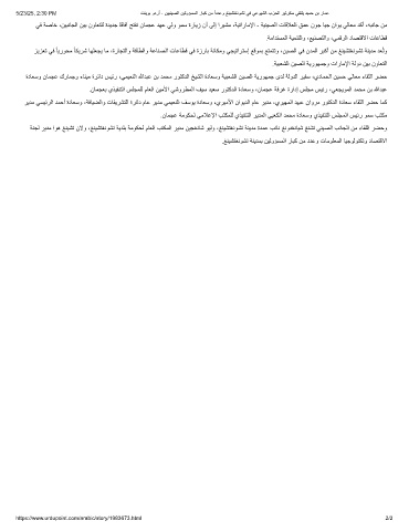 5/23/25, 2:30 PM تﻧﯾوﺑ ودرأ - نﯾﯾﻧﯾﺻﻟا نﯾﻟوؤﺳﻣﻟا رﺎﺑﻛ نﻣ ًاددﻋو ﻎﻧﯾﺷﺗﻐﻧوﺷﺗ ﻲﻓ ﻲﻋوﯾﺷﻟا بزﺣﻟا رﯾﺗرﻛﺳ ﻲﻘﺗﻠﯾ دﯾﻣﺣ نﺑ رﺎﻣﻋ
