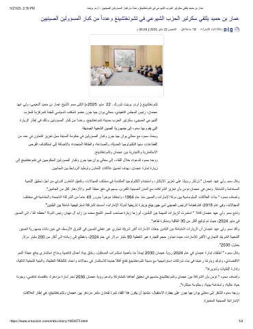 نﯾﯾﻧﯾﺻﻟا نﯾﻟوؤﺳﻣﻟا رﺎﺑﻛ نﻣ اددﻋو ﻎﻧﯾﺷﺗﻐﻧوﺷﺗ ﻲﻓ ﻲﻋوﯾﺷﻟا بزﺣﻟا رﯾﺗرﻛﺳ ﻲﻘﺗﻠﯾ دﯾﻣﺣ نﺑ رﺎﻣﻋ
