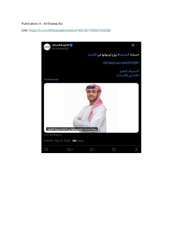 Publication: X – Al Khaleej Biz Link: https://x.com/AlkhaleejBiz/status/1921901799587344388