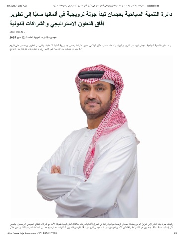 5/13/25, 10:10 AM ﺔﯾﻟودﻟا تﺎﻛارﺷﻟاو ﻲﺟﯾﺗارﺗﺳﻻا نوﺎﻌﺗﻟا قﺎﻓآ رﯾوطﺗ ﻰﻟإ ﺎًﯾﻌﺳ ﺎﯾﻧﺎﻣﻟأ ﻲﻓ ﺔﯾﺟﯾورﺗ ﺔﻟوﺟ أدﺑﺗ نﺎﻣﺟﻌﺑ ﺔﯾﺣﺎﯾﺳﻟا ﺔﯾﻣﻧﺗﻟا ةرﺋاد - TajaribMena