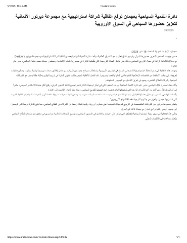 Dertour) روﺗرﯾد ﺔﻋوﻣﺟﻣ ﻊﻣ ﺔﯾﺟﯾﺗارﺗﺳا ﺔﻛارﺷ ﺔﯾﻗﺎﻔﺗا نﺎﻣﺟﻌﺑ ﺔﯾﺣﺎﯾﺳﻟا ﺔﯾﻣﻧﺗﻟا ةرﺋاد تﻌ ّ ﻗو ،ﺔﯾﻣﻟﺎﻌﻟا قاوﺳﻷا ﻊﻣ ﺎﮭﻧوﺎﻌﺗ قﺎطﻧ ﻊﯾﺳوﺗو ﻲﻟودﻟا ﺎھروﺿﺣ زﯾزﻌﺗﻟ ةرﻣﺗﺳﻣﻟا ﺎھدوﮭﺟ نﻣﺿ