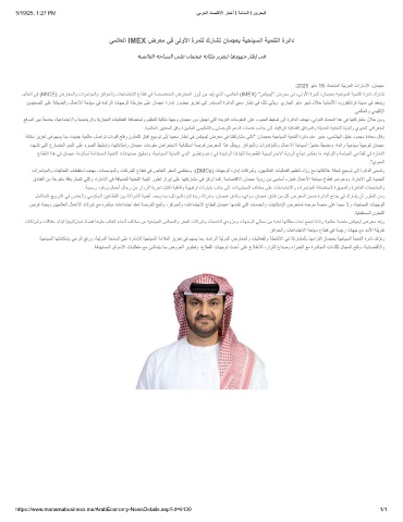ﻲﻣﻟﺎﻌﻟا IMEX ضرﻌﻣ ﻲﻓ ﻰﻟوﻷا ةرﻣﻠﻟ كرﺎﺷﺗ نﺎﻣﺟﻌﺑ ﺔﯾﺣﺎﯾﺳﻟا ﺔﯾﻣﻧﺗﻟا ةرﺋاد