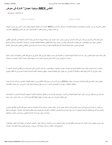5/19/25, 1:20 PM ضرﻌﻣ ﻲﻓ كرﺎﺷﺗ ”نﺎﻣﺟﻋ ﺔﯾﺣﺎﯾﺳ IMEX مﻼﺳﻟا ﺔﻟﺎﺳر – ﻲﻣﻟﺎﻌﻟا