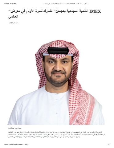 5/19/25, 1:19 PM “ضرﻌﻣ ﻲﻓ ﻰﻟوﻷا ةرﻣﻠﻟ كرﺎﺷﺗ ”نﺎﻣﺟﻌﺑ ﺔﯾﺣﺎﯾﺳﻟا ﺔﯾﻣﻧﺗﻟا IMEX رﺎﺑﺧﻸﻟ رﺎﺑﺳﻣ – ﻲﻣﻟﺎﻌﻟا
