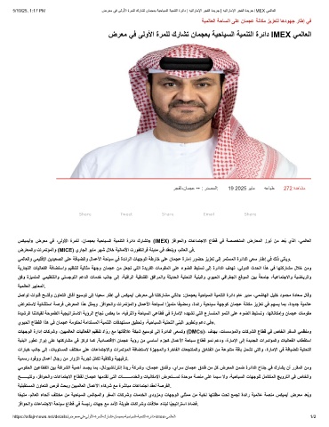 5/19/25, 1:17 PM ضرﻌﻣ ﻲﻓ ﻰﻟوﻷا ةرﻣﻠﻟ كرﺎﺷﺗ نﺎﻣﺟﻌﺑ ﺔﯾﺣﺎﯾﺳﻟا ﺔﯾﻣﻧﺗﻟا ةرﺋاد | ﮫﯾﺗارﺎﻣﻹا رﺟﻔﻟا ةدﯾرﺟ | ﮫﯾﺗارﺎﻣﻹا رﺟﻔﻟا ةدﯾرﺟ IMEX ﻲﻣﻟﺎﻌﻟا